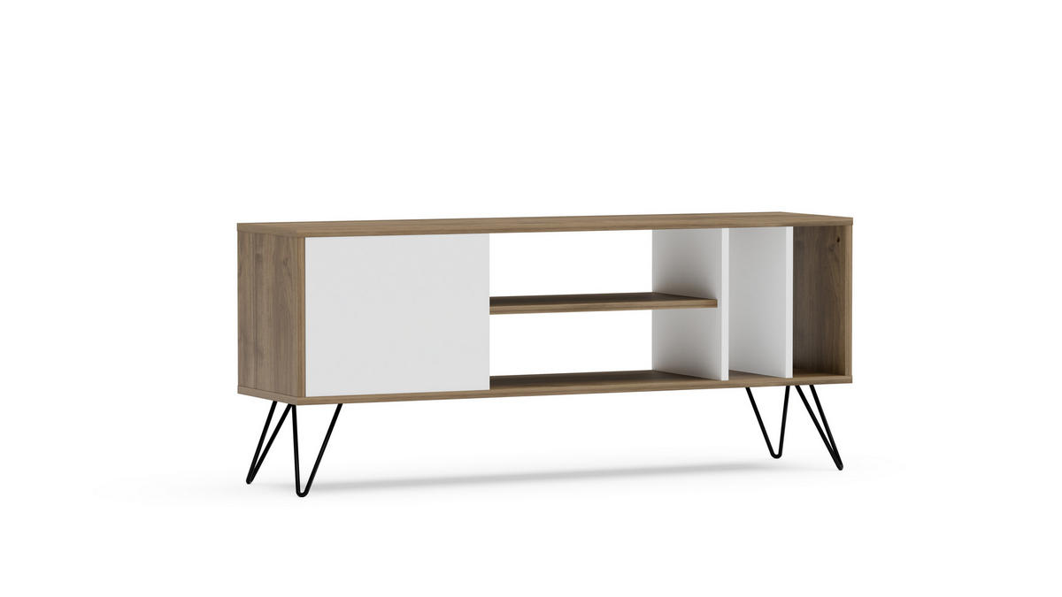 TV Board MISTIKO ein Hauch von edlem Metall. So entsteht eine einzigartige Materialkombination, die İhrem Wohnzimmer den Charme der Vergangenheit und das moderne Flair der Zukunft verleiht.Diese Konsole mit 4 Ablagen und 1 Schrank bietet Stauraum für İhren Fernseher, Mediathek, Spielekonsole, DVD-Player, Bücher, Accessoires oder vieles mehr. Für den Aufbau dieses TV-Möbels brauchen Sie kein Experte zu sein, denn wir liefern Ihnen das nötige Know-how in Form einer ausführlichen Anleitung gleich mit.