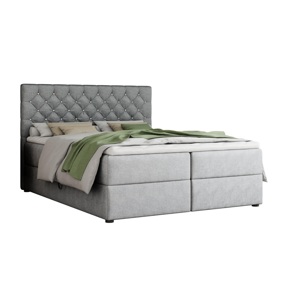 Deine Möbel 24 BOXBETT BEST 200/200 Velours Hellgrau mit Taschen-Federkernmatratzen 7 Zonen H4