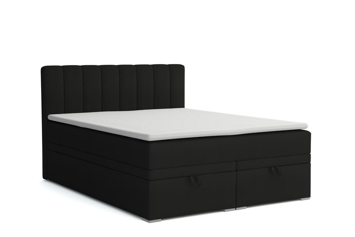 Deine Möbel 24 BOXBETT DAVID 140/200 Velour Schwarz mit einer Matratze H4