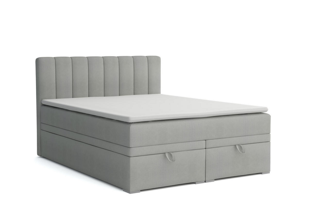 BOXBETT DAVID 180/200 Velour Hellgrau mit einer Matratze H4 - Hellgrau, Holz/Holzwerkstoff (180/200cm) - Deine Möbel 24