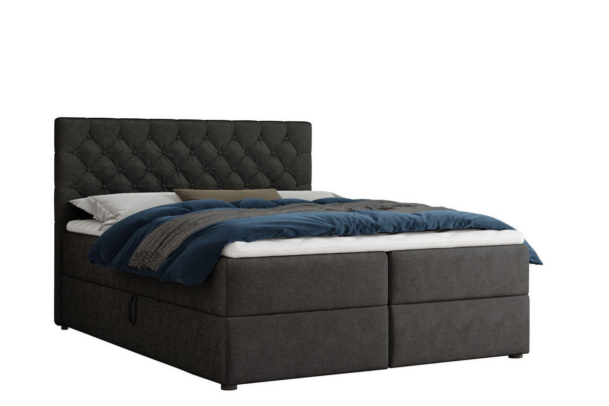 Deine Möbel 24 BOXBETT MIRAMI 180/200 Schwarz mit Taschen-Federkernmatratzen 7 Zonen H4
