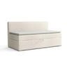 - Integrierter, nach vorn klappbarer Bettkasten mit viel Stauraum für Decken & Kissen
