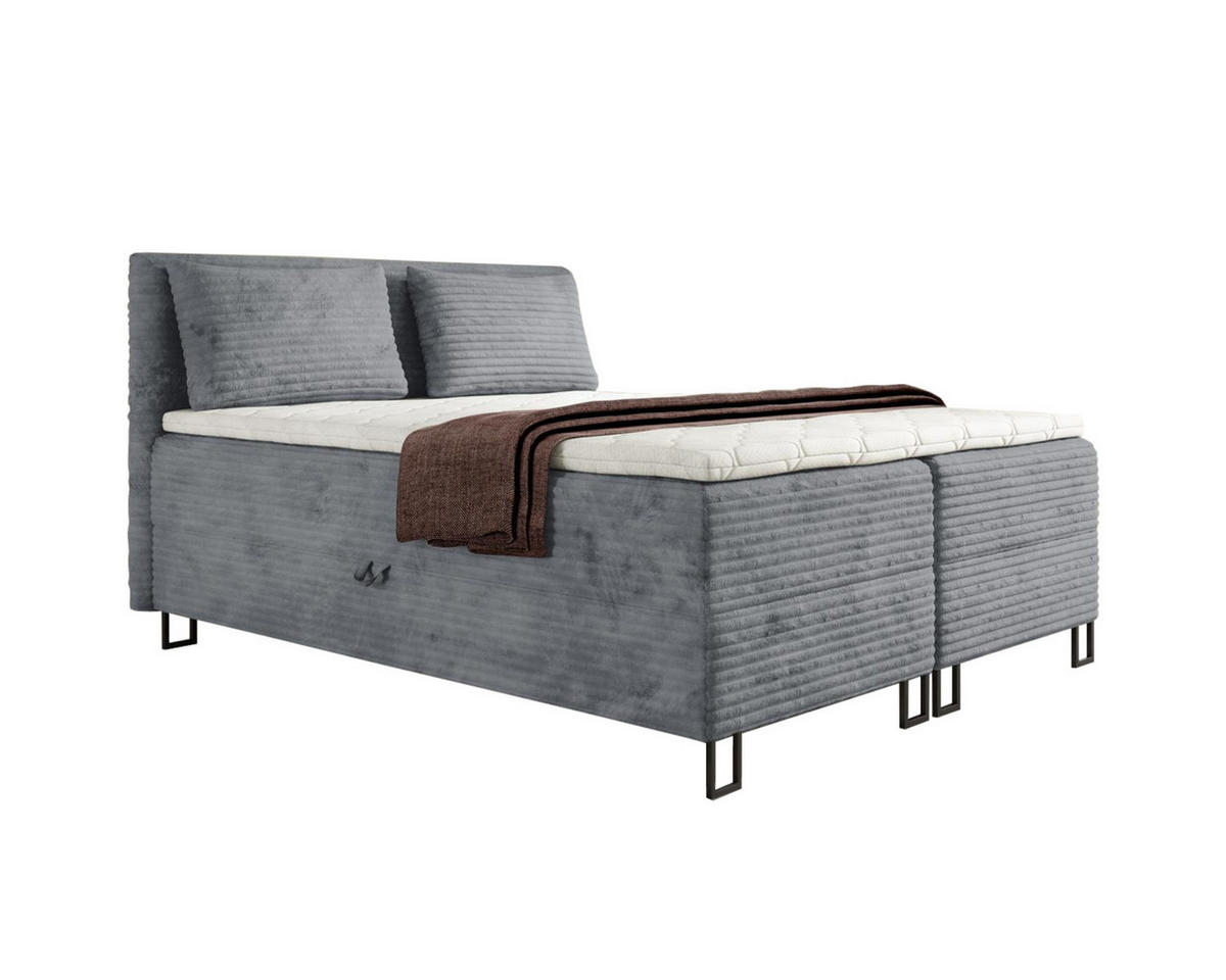 Deine Möbel 24 BOXBETT TEXAS 140/200 in Cord Grau mit Bonell-Federkernmatratzen H3
