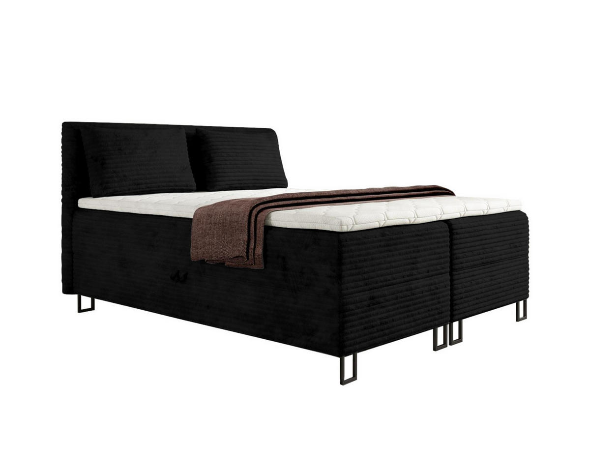 Deine Möbel 24 BOXBETT TEXAS 140/200 in Cord Schwarz mit Taschen-Federkernmatratzen 7 Zonen H4
