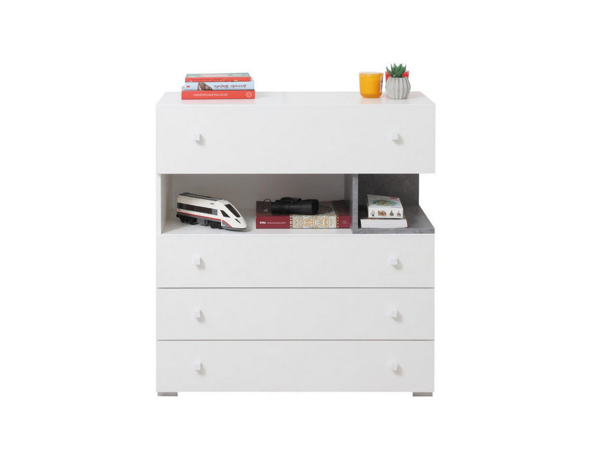 Ideal für moderne Jugendzimmer! Diese Kollektion besteht aus 16 stilvollen Elementen, erhältlich in Weiß Lux/Beton und Beton/Weiß Lux/Eiche. Gefertigt aus hochwertiger Möbelplatte, garantieren die Möbel Langlebigkeit und Robustheit.