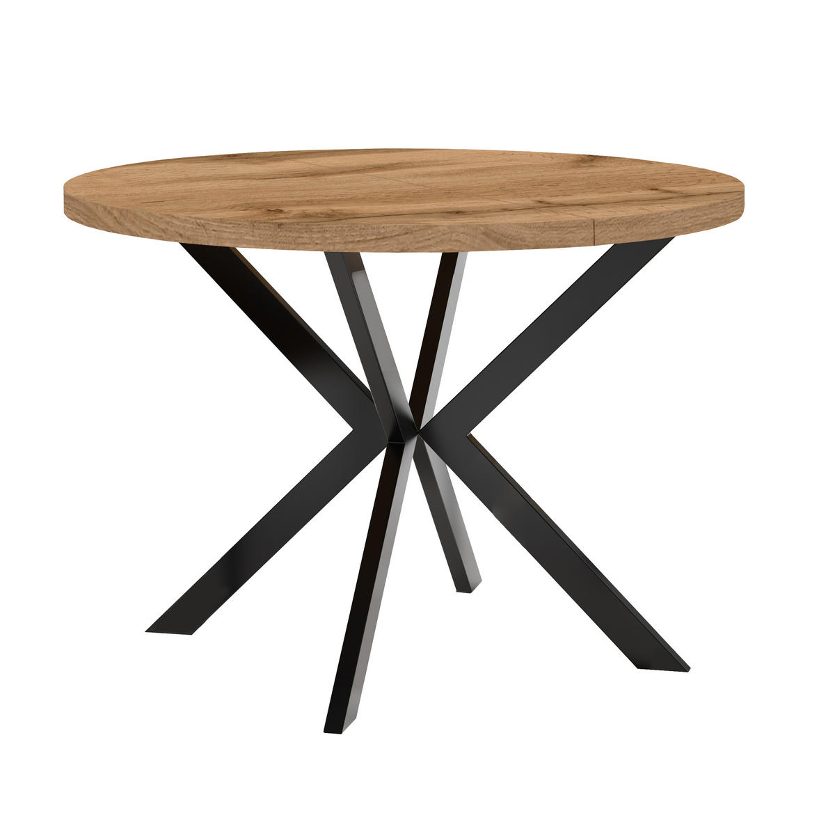 ESSTISCH ENDIK, Durchmesser: 110 / 210 cm, Farbe: Eiche Wotan / Schwarz - Eiche Wotan/Schwarz, Holzwerkstoff/Metall (210/110/77cm) - Dekori_Interiors