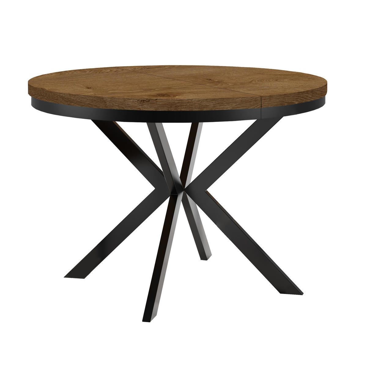 Der Tisch ENDIK ist ideal für Liebhaber des Loft-, Industrie- und modernen Stils. Er hat eine dicke, runde Platte aus laminierter Platte und dezente Beine, die dem Gesamtdesign Zartheit verleihen. Er entfaltet sich auf hochwertigen Schienenführungen, wodurch er auch bei maximaler Ausklapplänge stabil ist und keine zusätzlichen Stützen benötigt. Das Möbelstück ist alltagstauglich und macht Ihr Wohn- oder Esszimmer einzigartig.