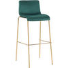 Sein elegantes Erscheinungsbild verdankt der Hocker der stilvollen Kombination aus edlem Samtbezug und einem Gestell in glänzender Gold-Optik.