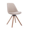 Dieser modische Besucherstuhl verleiht jedem Raum einen exklusiven Look. Der komfortable Stuhl besticht nicht nur durch seine hervorragenden Sitzeigenschaften, sondern auch durch den spannenden Materialmix aus Stoff und Holz. Die Sitzschale ist dabei mit einem pflegeleichtem Stoff überbezogen, eine gepolsterte Sitzfläche sorgt zusätzlich für ein komfortabes Sitzgefühl, auch nach längerer Sitzdauer. Auf dem drehbaren 4-Fuß Untergestell aus Holz, wahlweise Buchen- oder Eichenholz steht dieser Besucherstuhl einfach bei jedem Anlass gut da und lässt sich schnell von jeder Seite aus benutzen.