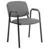 Die gepolsterte Sitzfläche, die Rückenlehne und die komfortablen Armlehnen, bezogen mit pflegeleichtem Kunstleder, bieten ein langanhaltend angenehmes Sitzgefühl. Dank des Vierfußgestells aus matt-schwarzem Metall steht der Stuhl standsicher und stabil - bei einer maximalen Belastbarkeit von 120 kg.