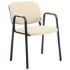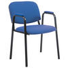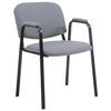 Die gepolsterte Sitzfläche, die Rückenlehne und die komfortablen Armlehnen, bezogen mit pflegeleichtem Stoff, bieten ein langanhaltend angenehmes Sitzgefühl. Dank des Vierfußgestells aus matt-schwarzem Metall steht der Stuhl standsicher und stabil - bei einer maximalen Belastbarkeit von 120 kg.