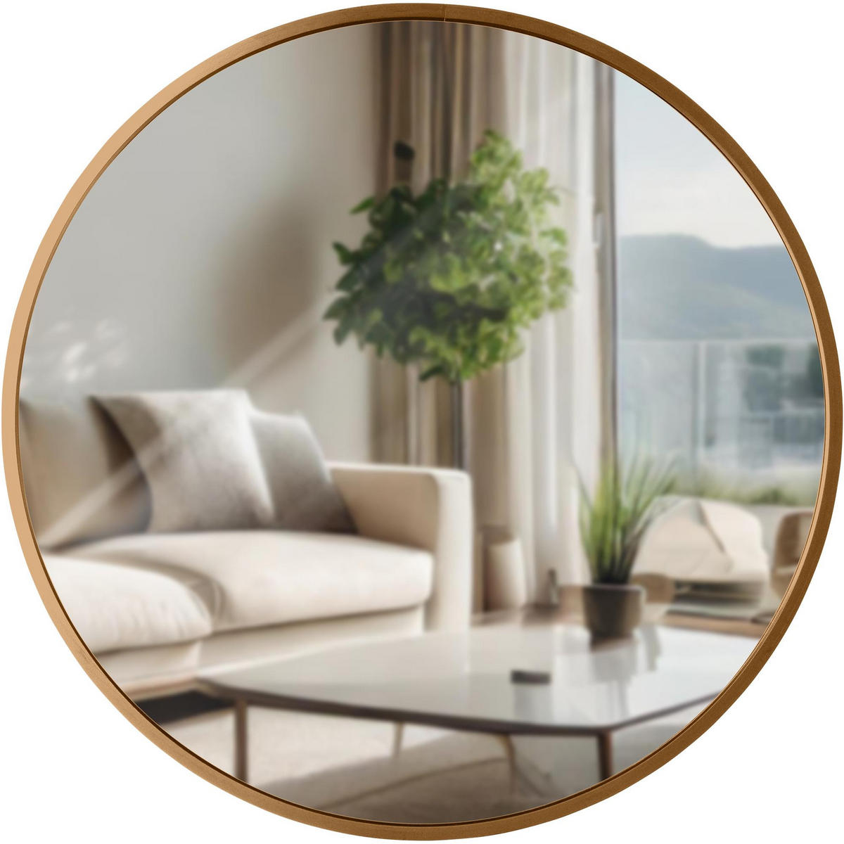 Der Wandspiegel ist ein runder Spiegel, der in vier verschiedenen Größen erhältlich ist: S (30 cm Durchmesser), M (45 cm Durchmesser), L (60 cm Durchmesser) und XL (80 cm Durchmesser). Der Spiegel verfügt über einen 1 cm breiten Rahmen mit einer Tiefe von 3 cm.
