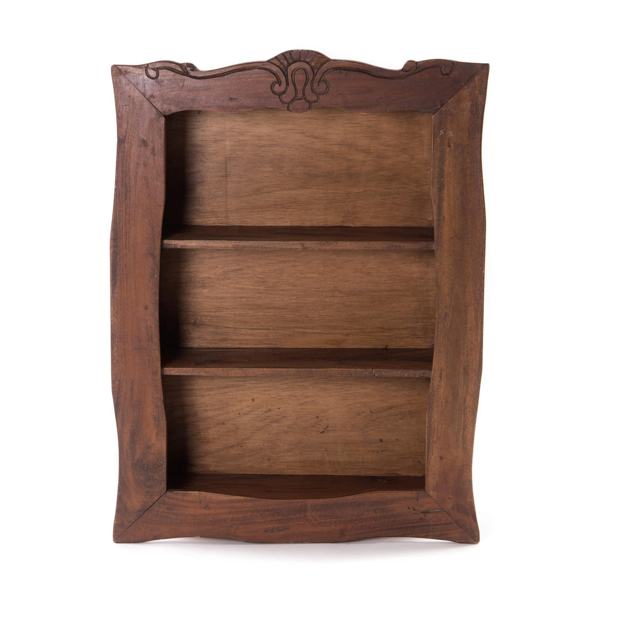 Die edlen Schnitzereien des Schränkchens werten jeden Wohnbereich auf und sorgen für einen besonderen Eyecatcher. Der Wandschrank schenkt Platz für hübsche Skulpturen, kleine Pflanzen und vieles mehr. Auch im Küchenbereich können hier Gewürze oder Tassen stilvoll präsentiert werden. Durch die aufwendige Handarbeit und einzigartige Schnitzereien ist jedes Schränkchen ein Unikat mit unverwechselbarem Charakter.