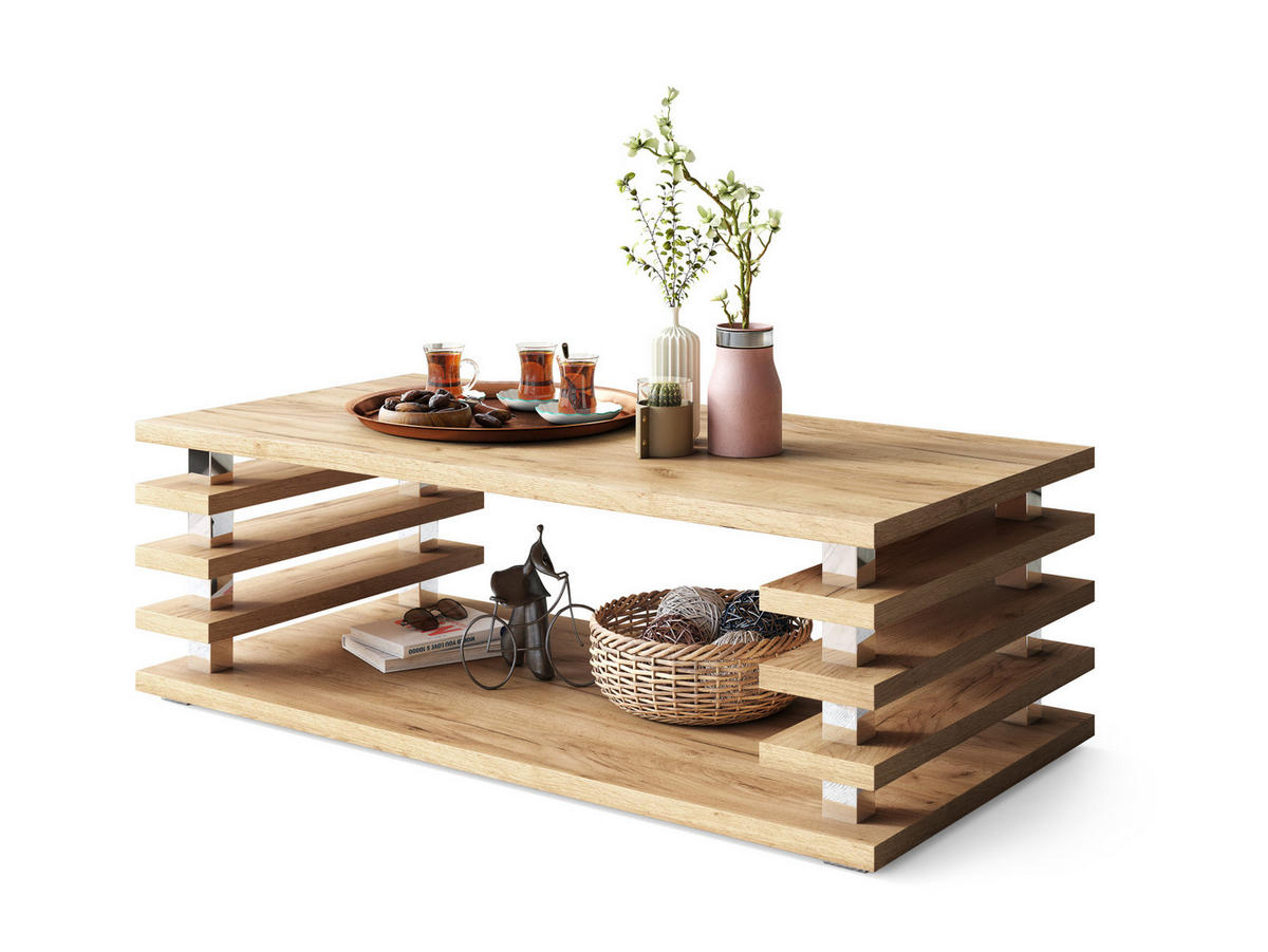 designimpex COUCHTISCH rechteckig Eiche Gold Ablage 120/40/60 cm