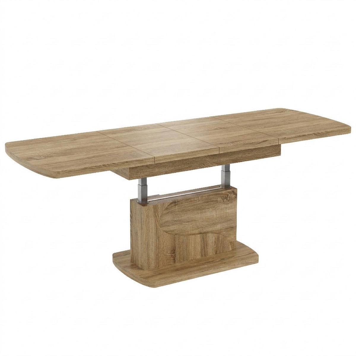 Ein wunderschöner, stabiler und sehr praktischer Funktionscouchtisch, der problemlos zu einem stabilen Esstisch umfunktioniert werden kann. Dieser moderne Tisch lässt sich in der Länge bis zu 200 cm ausziehen und zudem noch in der Höhe von 58 - 77 cm stufenlos verstellen. Durch einen hochwertigen Hebemechanismus (Gasdruck), wird der Tisch auf die gewünschte Höhen eingestellt.