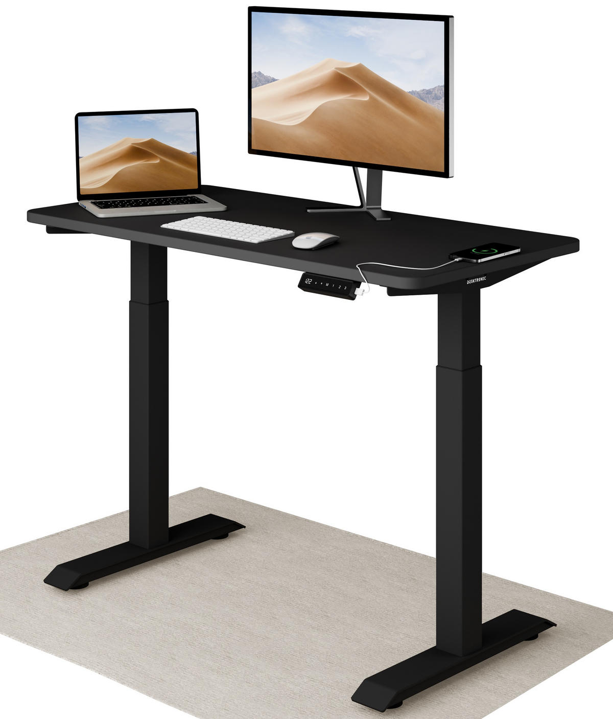 Desktronic SCHREIBTISCH Elektrisch Höhenverstellbarer HomeOne 120x60cm Schwarz/Schwarz mit Memory-Funktion, Anti-Kollisions Technologie