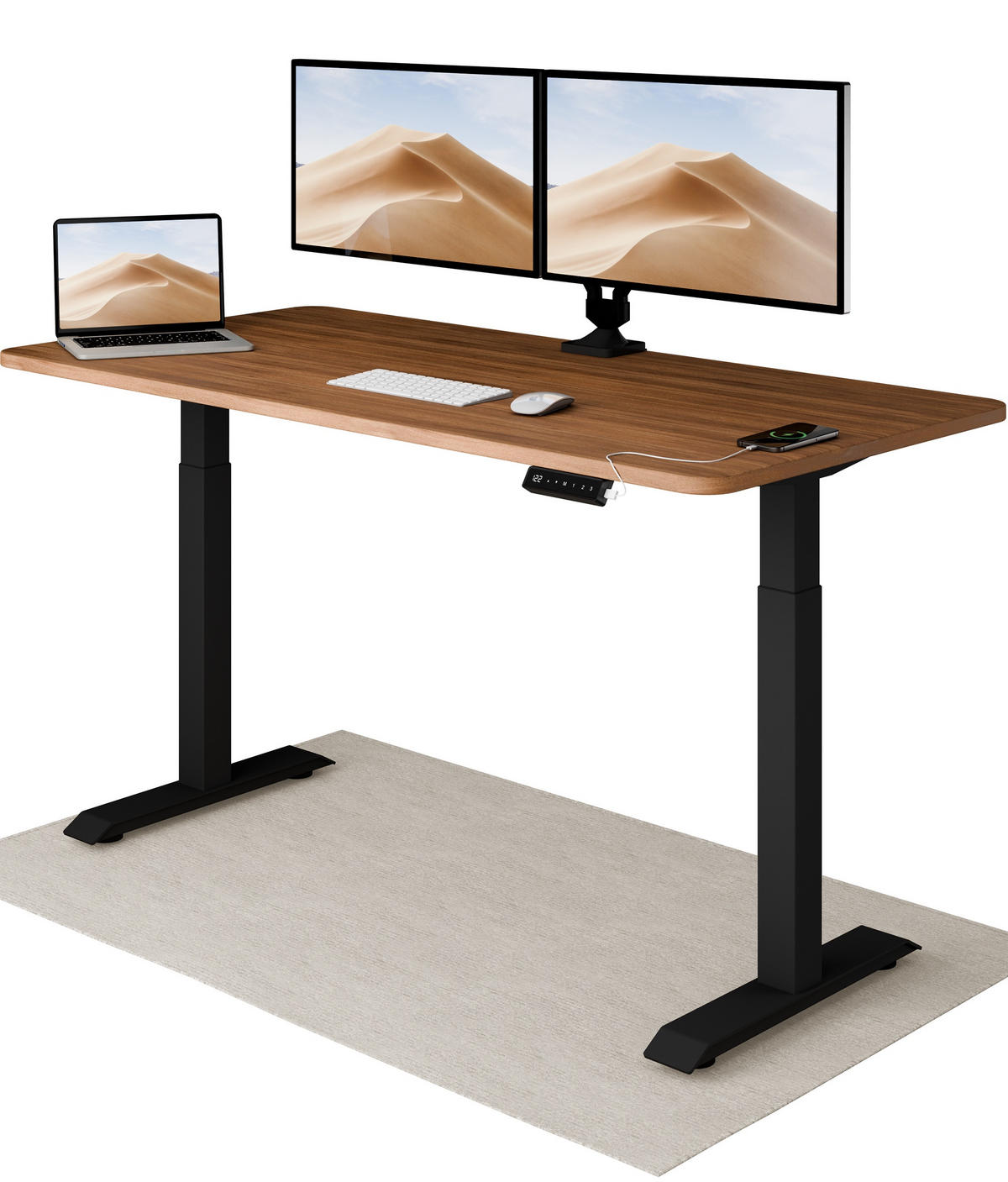 Desktronic SCHREIBTISCH Elektrisch Höhenverstellbarer HomeOne 160x80cm Schwarz/Walnuss mit Memory-Funktion, Anti-Kollisions Technologie