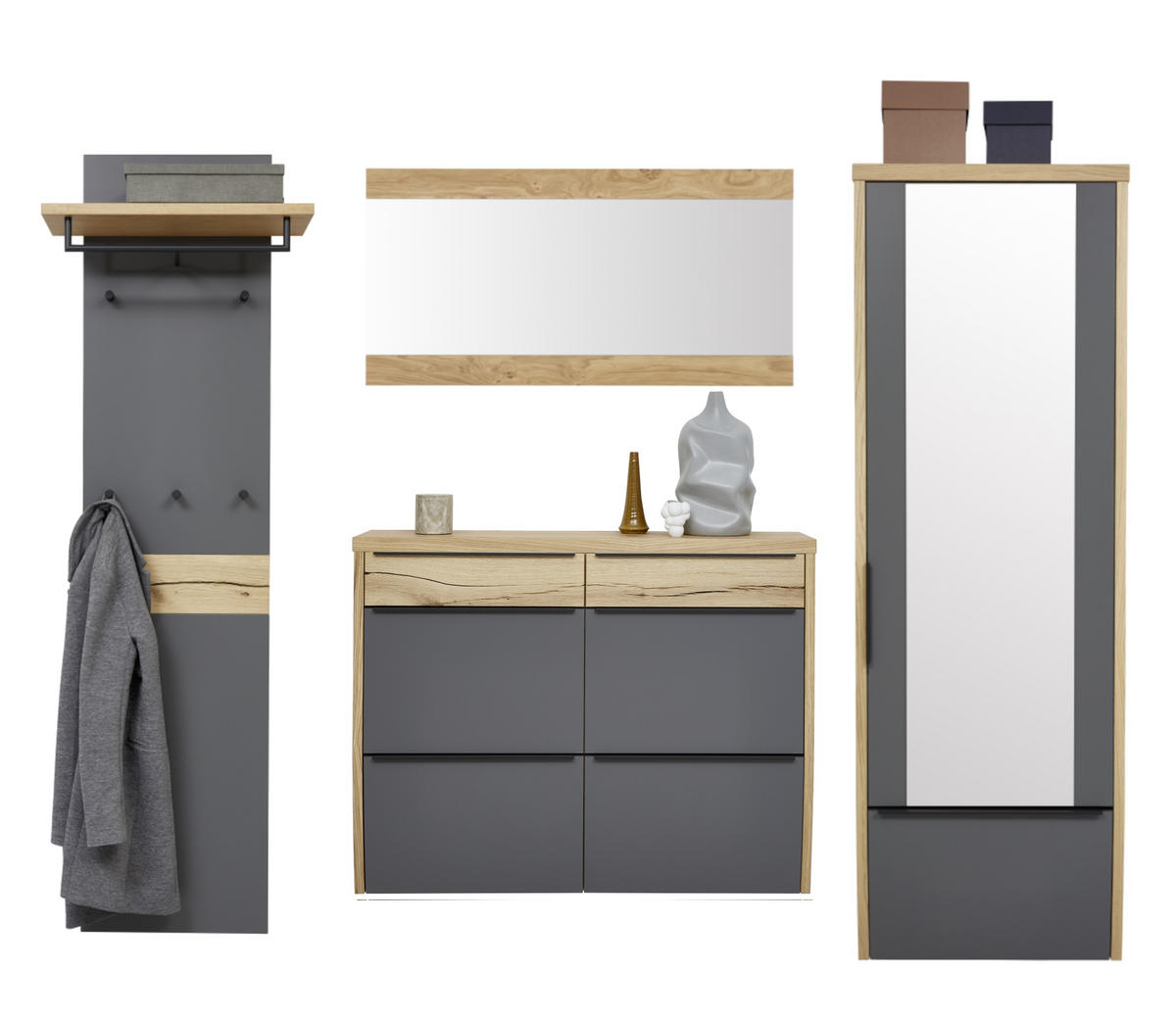 DIETER KNOLL Garderobe in Grau und Eichefarben: extra sympathische Begrüßung