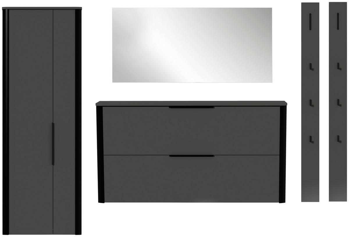 GARDEROBE 5-teilig  in 280/191/34 cm  - Anthrazit/Schwarz, Design, Glas/Holzwerkstoff (280/191/34cm) - Dieter KnollDieter Knoll
