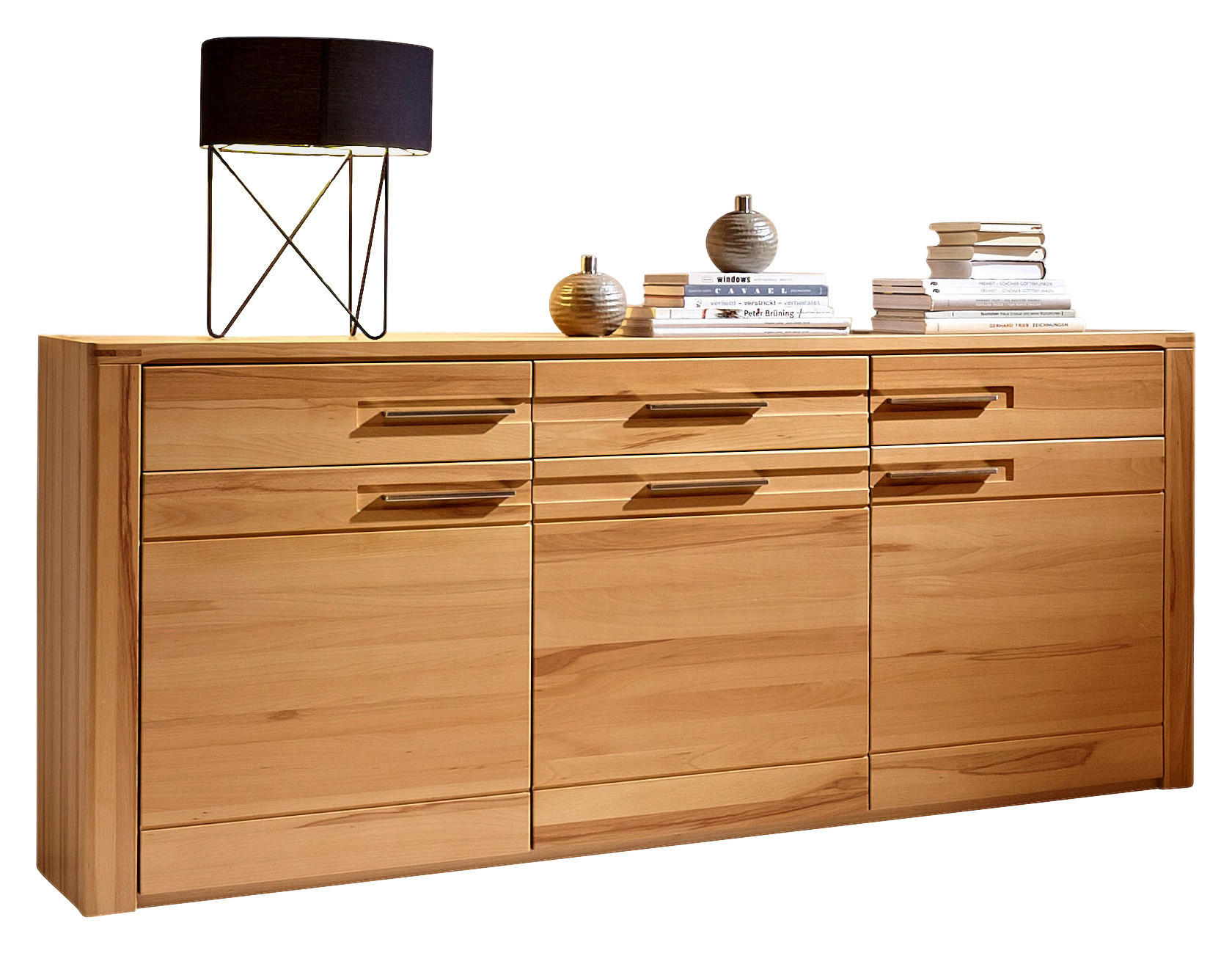 Der Flur vermittelt Gästen einen ersten Eindruck von Ihrem Zuhause. Machen Sie mehr daraus: Diese Kommode ist ein hochwertiges Möbel für Ihre Diele. Die Fronten und die Oberplatte bestehen aus massivem Erlenholz und sorgen zusammen mit den durch Dekorfolien im selben Holzton veredelten Seiten für ein natürliches Ambiente. Metallgriffleisten in Alufarben runden den Look ab. Unter einem Spiegel oder einem großen Bild platziert, fällt das ca. 141 cm breite Möbel angenehm ins Auge.