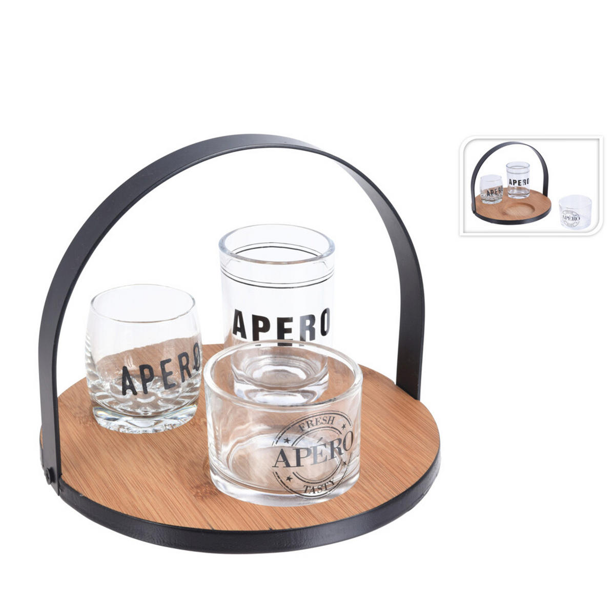 DIPSCHALENSET 18 cm  - Transparent/Schwarz, Trend, Glas/Holz (18cm)