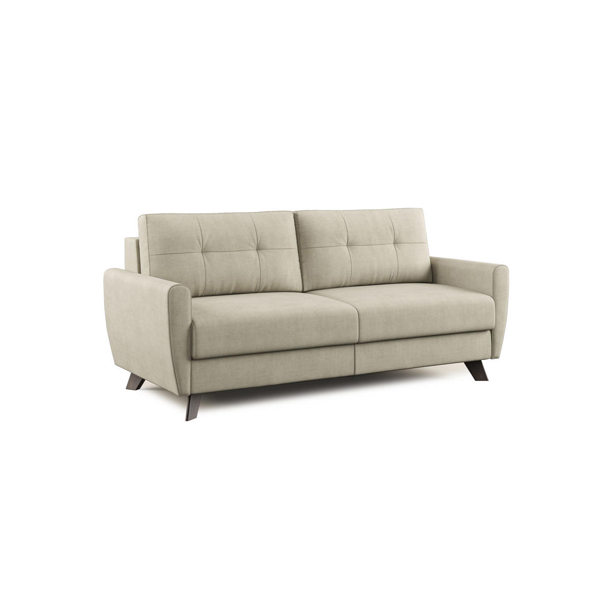 Seine Linien und Holzfüße passen perfekt zu einem skandinavischen und Shabby-Stil. Der Klappmechanismus hat eine elektrogeschweißte Netz-Schlafunterlage, kann aber auch mit der Schlafunterlage aus Buchenholz LATTENROST hergestellt werden. Beide haben am Ende elastische Bänder, die sich bei geschlossenem Sofa unter der Sitzfläche befinden und sie weicher und bequemer machen.