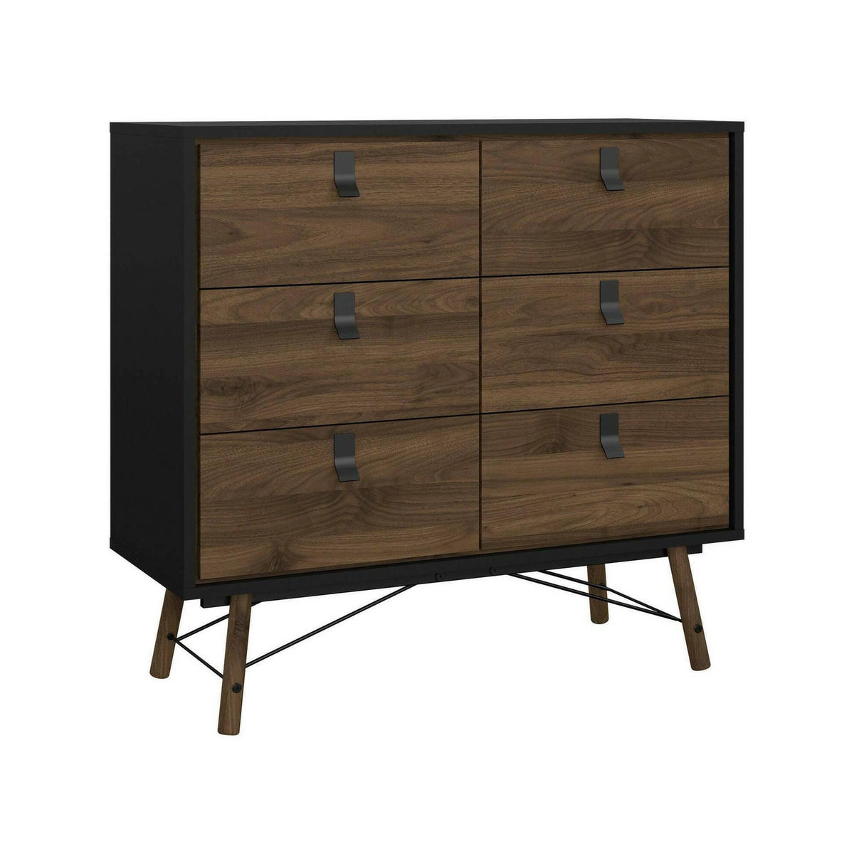KOMMODE - Wohnzimmerbuffet, Wohnzimmer-Sideboard, Moderne Küchen-Speisekammer, 102x40 h95 cm, Schwarz und Walnuss. AUFBAU UND VERWENDUNG – Mehrzweck-, praktische und platzsparende Wohnzimmermöbel mit elegantem und funktionalem Design – Kann auch als TV-Schrank verwendet werden, in dem Sie Ihre Lieblingsornamente aufbewahren können – Dieses multifunktionale Einrichtungselement eignet sich perfekt für die Dekoration des Esszimmers Ob im Wohnzimmer, im Flur, im Eingangsbereich oder im Büro, in dem sich ordentlich Geschirr, Gläser, Tischdecken, Besteck, Bücher, Dokumente oder Dekorationsgegenstände befinden. QUALITÄT UND DESIGN - Modernes und elegantes Design-Möbelstück, perfekt für die Einrichtung einer zeitgemäßen und hellen Umgebung - Ideal für alle, die nach Funktionalität und platzsparenden Lösungen suchen, ist dieses Produkt perfekt für Häuser und Wohnungen aller Größen - Zwei Jahre Garantie ab Kaufdatum. TECHNISCHE EIGENSCHAFTEN – Vielseitiges Einrichtungszubehör, konzipiert für die einfache Integration mit anderen Möbeln – Widerstandsfähige Verpackung, konzipiert für den E-Commerce - Material: Melaminbeschichtete Spanplatte - Zusätzliche Infos: EPA 40 CFR TSCA-zertifizierter Artikel – Formaldehydfreisetzung gemäß den Richtlinien IOS/MAT/0181/EN 17120 – zerlegt – ausgestattet mit Montagesatz – sechs Schubladen. ABMESSUNGEN IN CM - Kommode : Länge: 101,8 Breite: 40,1 Höhe: 94,8 - Zusätzliche Abmessungen: Schubladenöffnung: 21,3 cm