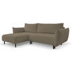 Mit 15 cm hohen Metallfüßen in Schwarz verleiht das ADEL Ecksofa Ihrem Raum einen modernen Look. Die gepolsterten Rückenlehnen ermöglichen es, das Sofa flexibel im Raum zu positionieren. Das minimalistische Design ohne zusätzliche Kissen oder verstellbare Kopfstützen betont den schlichten und eleganten Stil des Sofas.