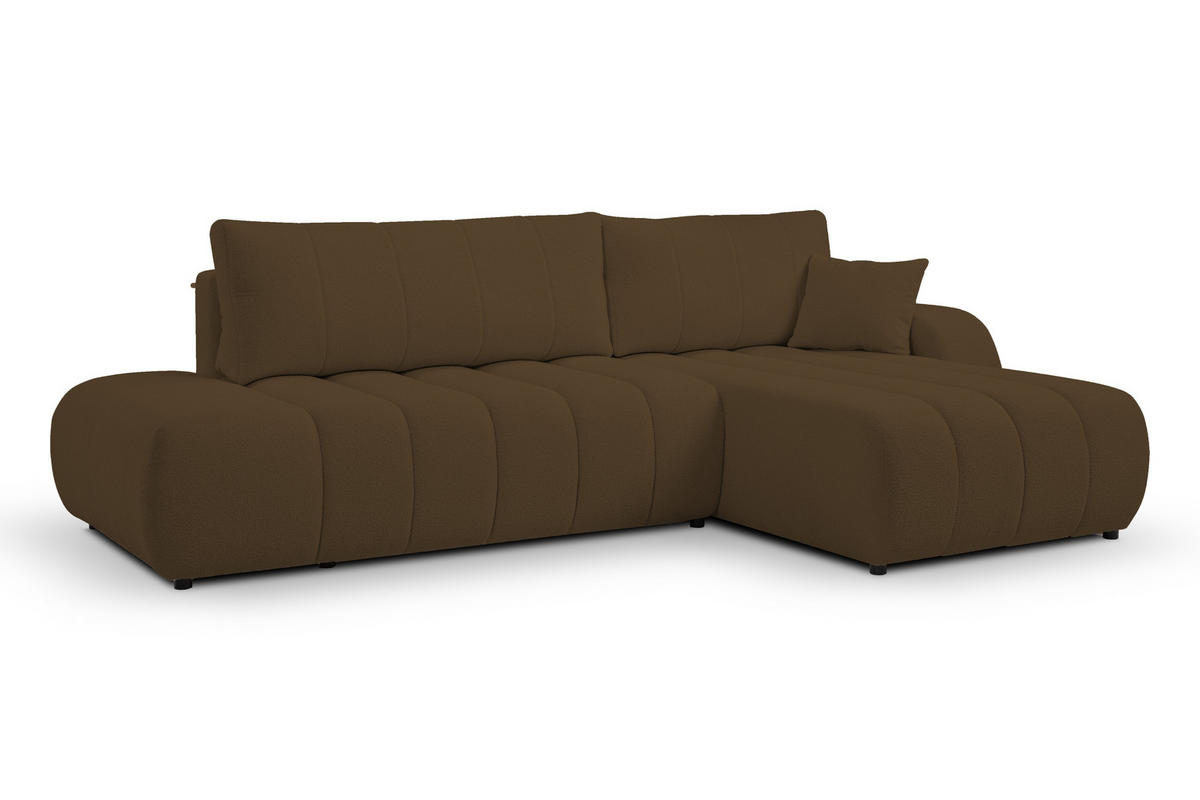 ECKSOFA Baloo mit Schlaffunktion und Bettkasten, komfortable Polsterung, Stoffbezug, lose Rückenkissen, freistehend, RECHTS, 276x176x88 cm, Brown - Braun, Holz/Textil (276/176cm) - DomoHomeDomoHome