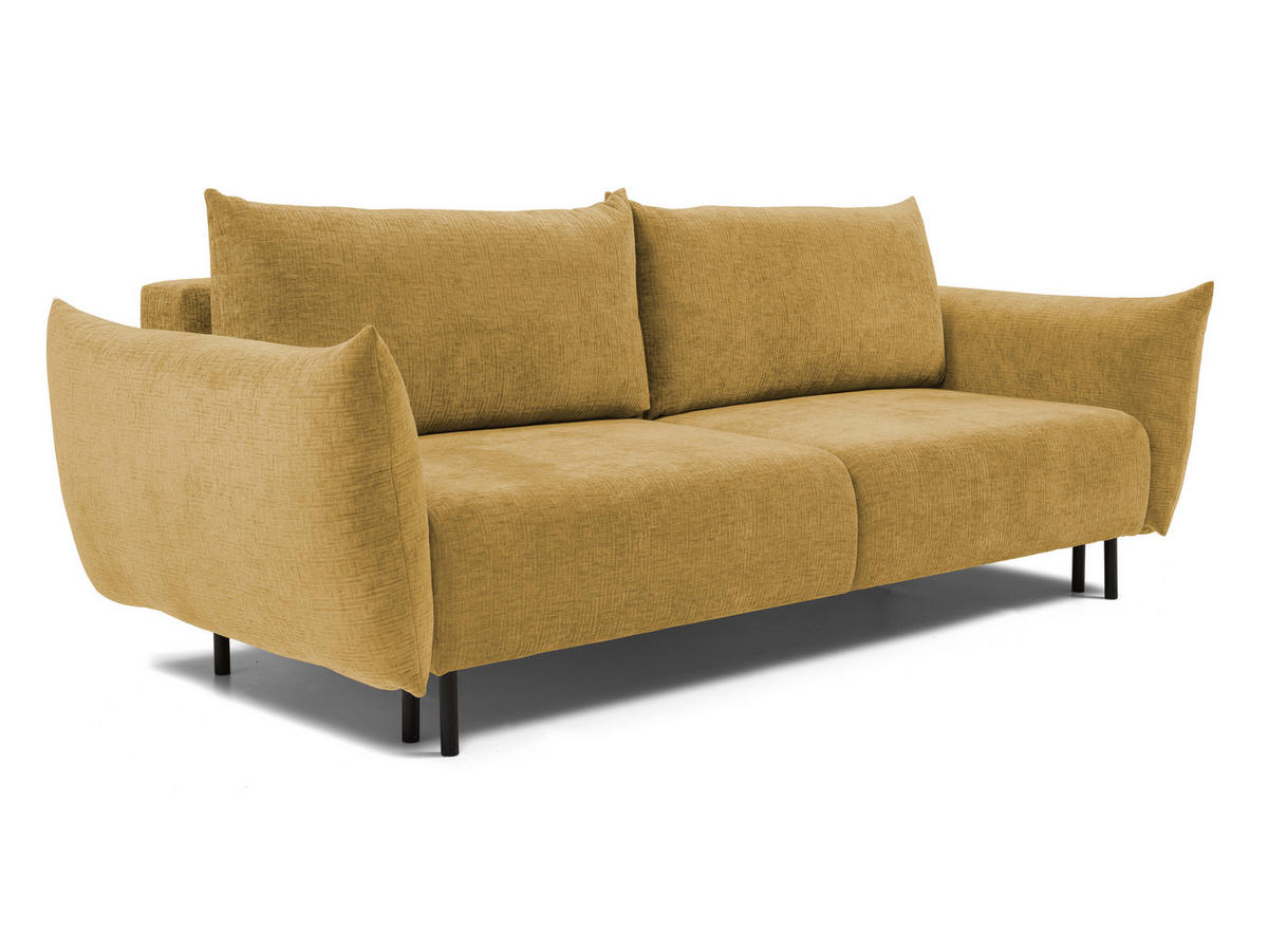DomoHome SOFA ADEL - Schlaffunktion Und Bettkasten, Wellenfederung, PUR-Schaum, Schwarze Metallfüße lose Rückenkissen, freistehend, 240x108x75 cm Gold