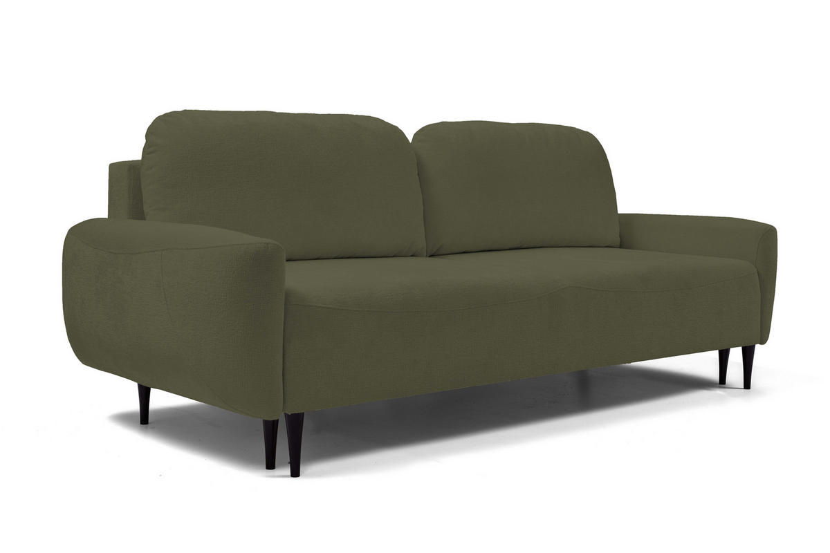 DomoHome SOFA BOHO Mit Schlaffunktion Und Bettkasten, Wellenfederung, PUR-Schaum, Holzfüße, lose Rückenkissen, freistehend, 244x102x92 cm Olive green