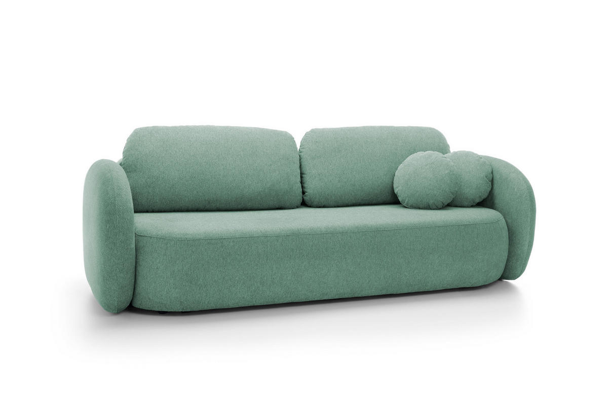 DomoHome SOFA OLIO Mit Schlaffunktion Und Bettkasten, Bonell-Taschenfederung, Aragon-Stoff, lose Rückenkissen, freistehend, 238x101x86 cm Light blue