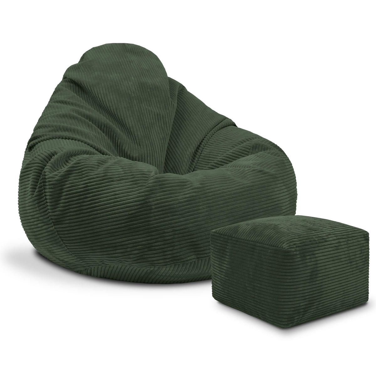 SITZSACK PARADISE MIT FUßSTÜTZE Kordsamt 2-tlg Forest Symphony M - Waldgrün/Grün, Textil (90/100/90cm) - DreamrootsDreamroots