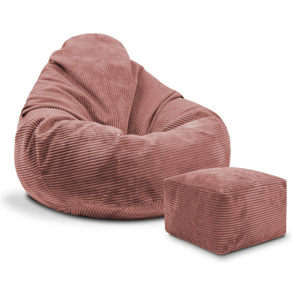 SITZSACK PARADISE MIT FUßSTÜTZE Kordsamt 2-tlg Ginger Spice M - Pink/Cognac, Textil (90/100/90cm) - Dreamroots