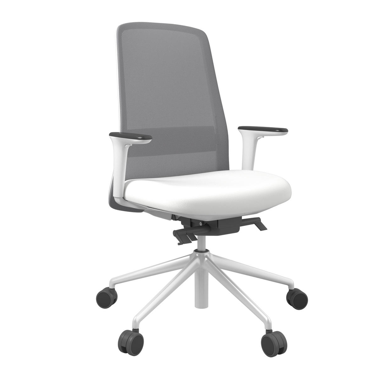 DREHSTUHL Lederlook Grau, Weiß