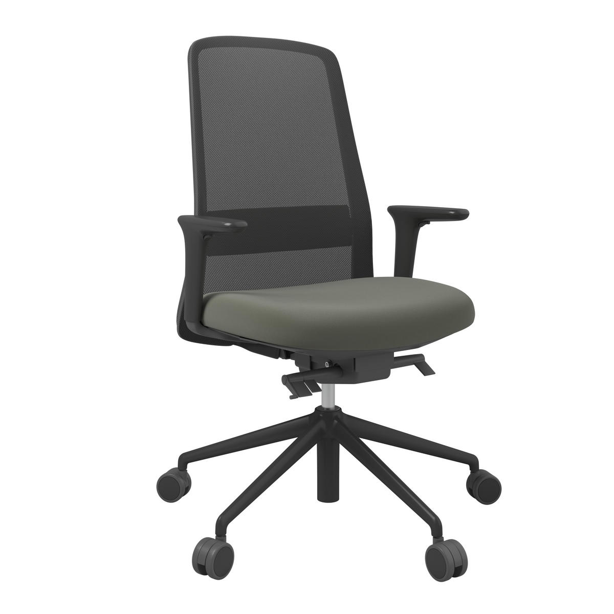 DREHSTUHL Schwarz, Schieferfarben  - Schieferfarben/Schwarz, MODERN, Leder/Kunststoff (70/103-115/70cm)