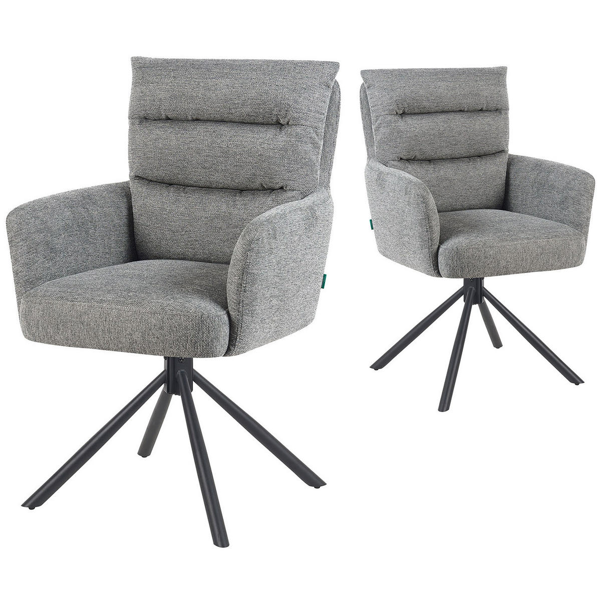 Der Esszimmerstuhl Mika-Jana ist die perfekte Kombination aus modernem Design, hohem Sitzkomfort und langlebiger Qualität. Mit seiner komfortablen Polsterung, den integrierten Armlehnen und der praktischen 360° Drehfunktion lädt er zu langen, entspannten Stunden am Esstisch ein.