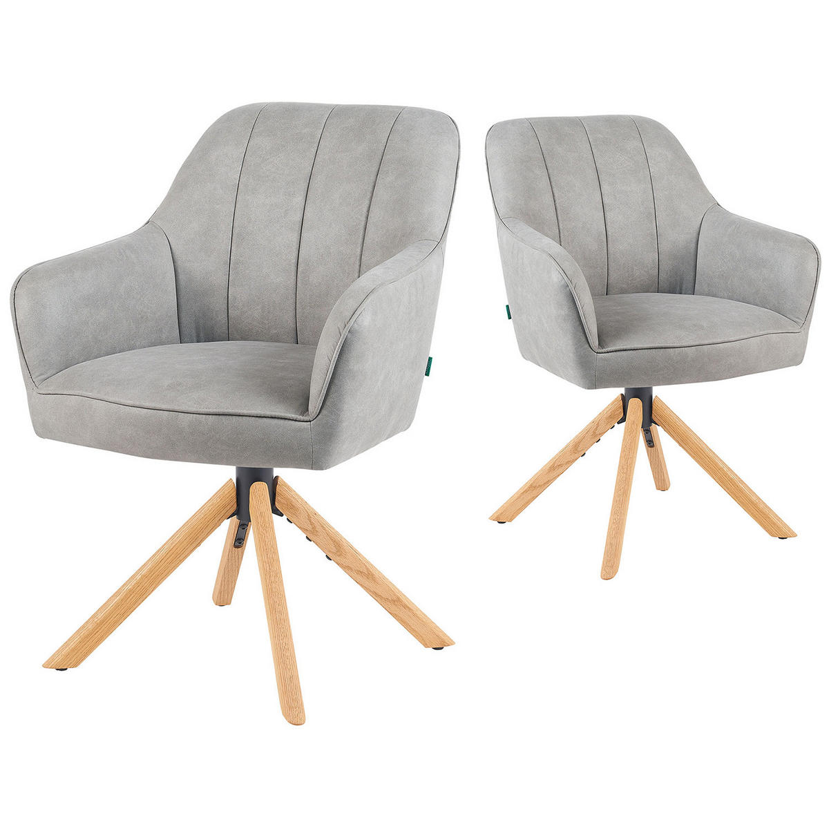 Der Esszimmerstuhl Mika-Levi von DUBI Möbel vereint modernes Design mit maximalem Komfort. Der Bezug aus hochwertiger Microfaser in stilvoller Wildlederoptik verleiht dem Stuhl eine elegante und zugleich pflegeleichte Oberfläche. Dank der praktischen 360° Drehfunktion mit Rückstellmechanik richtet sich der Stuhl nach dem Aufstehen automatisch zurück – ideal für ein stets aufgeräumtes Ambiente am Esstisch. Das geölte Eichenholzgestell sorgt für Stabilität und verleiht dem Stuhl einen natürlichen, warmen Charakter. Mit seiner ergonomischen Polsterung und den bequemen Armlehnen ist der Mika-Levi perfekt für lange, gemütliche Abende mit Familie und Freunden.