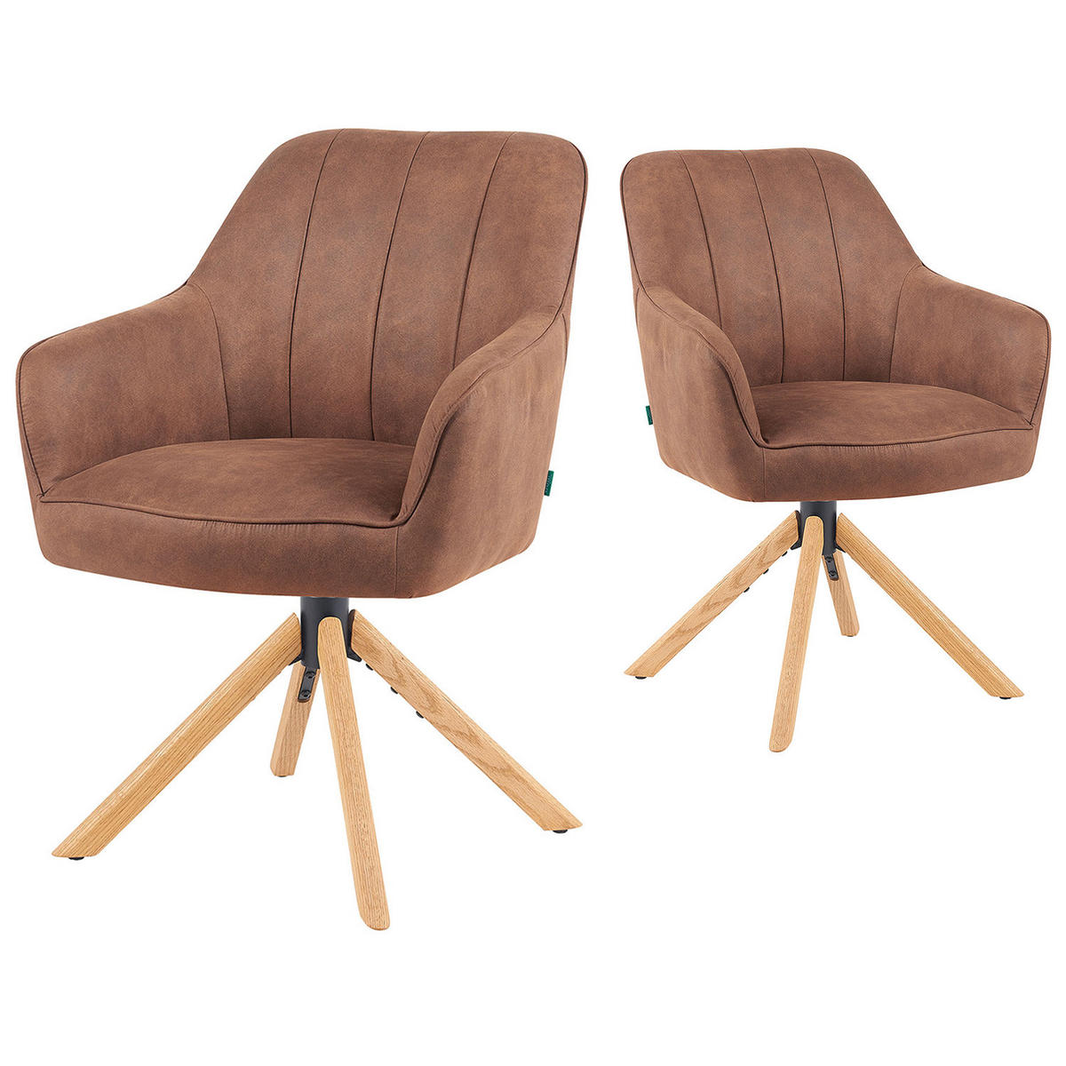 Der Esszimmerstuhl Mika-Levi von DUBI Möbel vereint modernes Design mit maximalem Komfort. Der Bezug aus hochwertiger Microfaser in stilvoller Wildlederoptik verleiht dem Stuhl eine elegante und zugleich pflegeleichte Oberfläche. Dank der praktischen 360° Drehfunktion mit Rückstellmechanik richtet sich der Stuhl nach dem Aufstehen automatisch zurück – ideal für ein stets aufgeräumtes Ambiente am Esstisch. Das geölte Eichenholzgestell sorgt für Stabilität und verleiht dem Stuhl einen natürlichen, warmen Charakter. Mit seiner ergonomischen Polsterung und den bequemen Armlehnen ist der Mika-Levi perfekt für lange, gemütliche Abende mit Familie und Freunden.