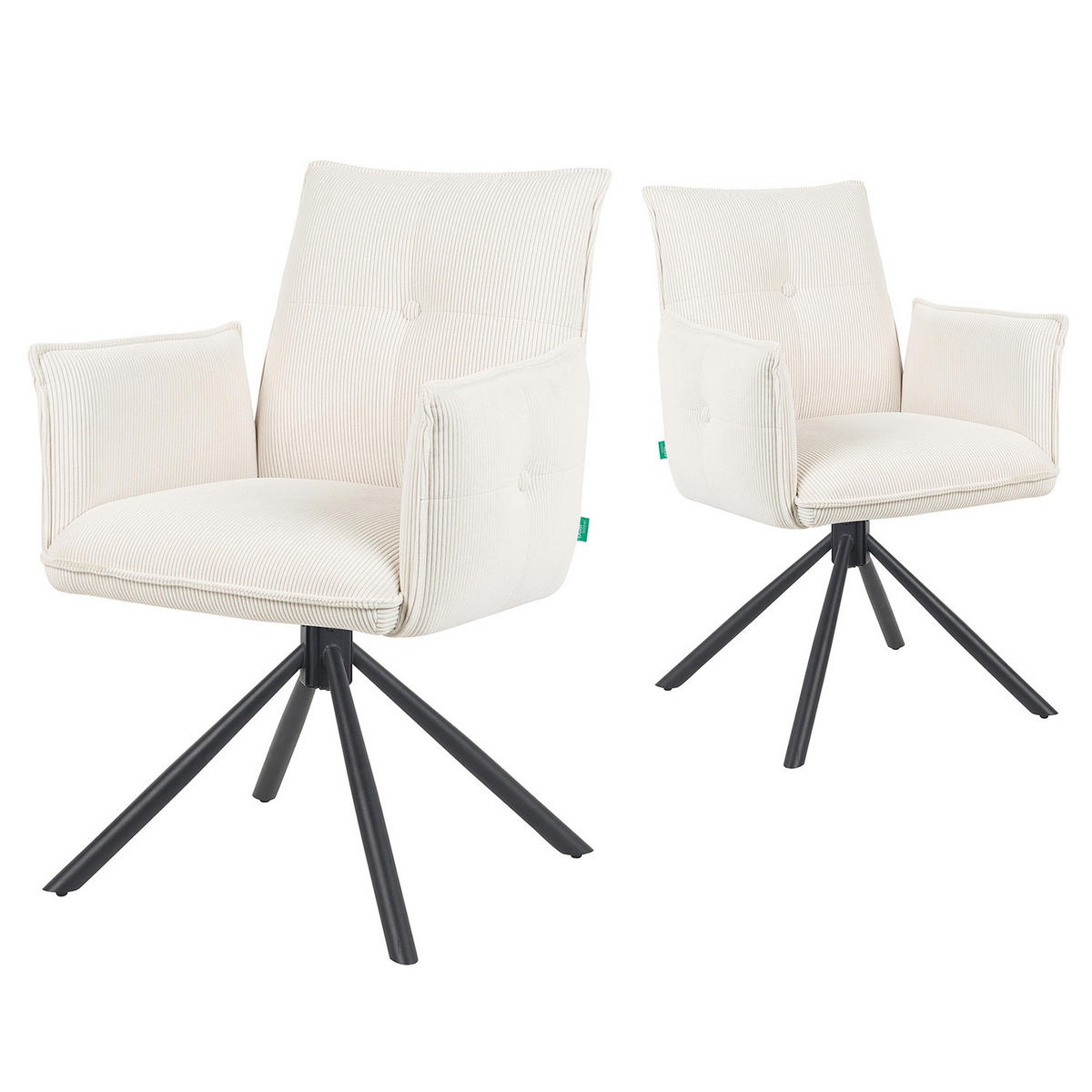 Der Esszimmerstuhl Mika-Nevio verbindet modernes Design mit höchstem Sitzkomfort. Der weiche Cordstoffbezug sorgt für eine stilvolle Optik und angenehmes Sitzgefühl. Dank der 360° Drehfunktion genießen Sie maximale Bewegungsfreiheit, während das stabile Metallgestell in pulverbeschichtetem Matt-Schwarz für Standfestigkeit und eine elegante Note sorgt.