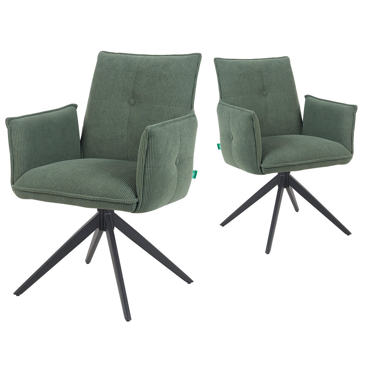 ARMLEHNSTUHL Mika-Nina 2er-Set - Schwarz/Grün, Textil/Metall (60/88/63cm) - DUBI MöbelDUBI Möbel