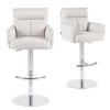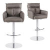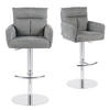 Der Barhocker Leo vereint modernes Design mit hohem Sitzkomfort. Die weiche Polsterung mit Rücken- und Armlehnen sorgt für entspanntes Sitzen, während die Höhenverstellung und die 360° Drehfunktion maximale Flexibilität im Alltag bieten. Das verchromte Metallgestell mit praktischem Fußablagering verleiht Stabilität und eleganten Glanz. Ob in der Küche, an der Bar oder am Tresen – dieser Hocker ist vielseitig einsetzbar und in den Farben Grau, Creme und Taupe erhältlich. Belastbar bis ca. 125 kg und leicht zu reinigen – ein idealer Begleiter für stilvolle Wohnräume.