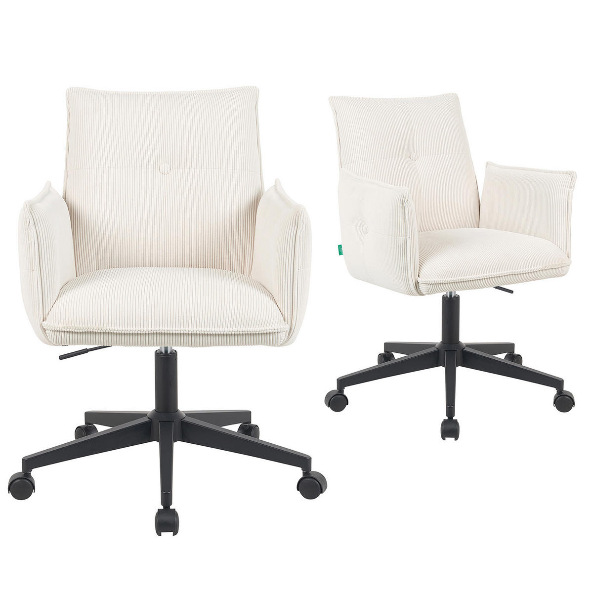 Der Bürostuhl Mika-Malu vereint modernes Design mit höchstem Sitzkomfort. Dank seiner bequemen Polsterung und dem weichen Microfaser-Bezug wird langes Sitzen im Homeoffice oder Konferenzraum angenehm. Das pulverbeschichtete Metallgestell mit Rollen sorgt für volle Bewegungsfreiheit, während die 360° Drehfunktion und die Höhenverstellung individuelle Anpassungen ermöglichen. Wählen Sie zwischen zeitlosen Farben Creme, Grün, Anthrazit oder einem auffälligen Blumenmuster – Mika-Malu passt perfekt zu Ihrem Einrichtungsstil. Belastbar bis 125 kg, steht er für Qualität, Stabilität und Komfort.