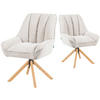Dank der 360° Drehfunktion mit Rückstellmechanik kehrt der Stuhl automatisch in seine Ausgangsposition zurück – praktisch und ordentlich für jede Tafelrunde. Der strapazierfähige Microfaserbezug ist pflegeleicht, langlebig und in den stilvollen Farben Grau und Creme erhältlich.