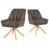Dank der 360° Drehfunktion mit Rückstellmechanik kehrt der Stuhl automatisch in seine Ausgangsposition zurück – praktisch und ordentlich für jede Tafelrunde. Der strapazierfähige Microfaserbezug ist pflegeleicht, langlebig und in den stilvollen Farben Grau und Creme erhältlich.