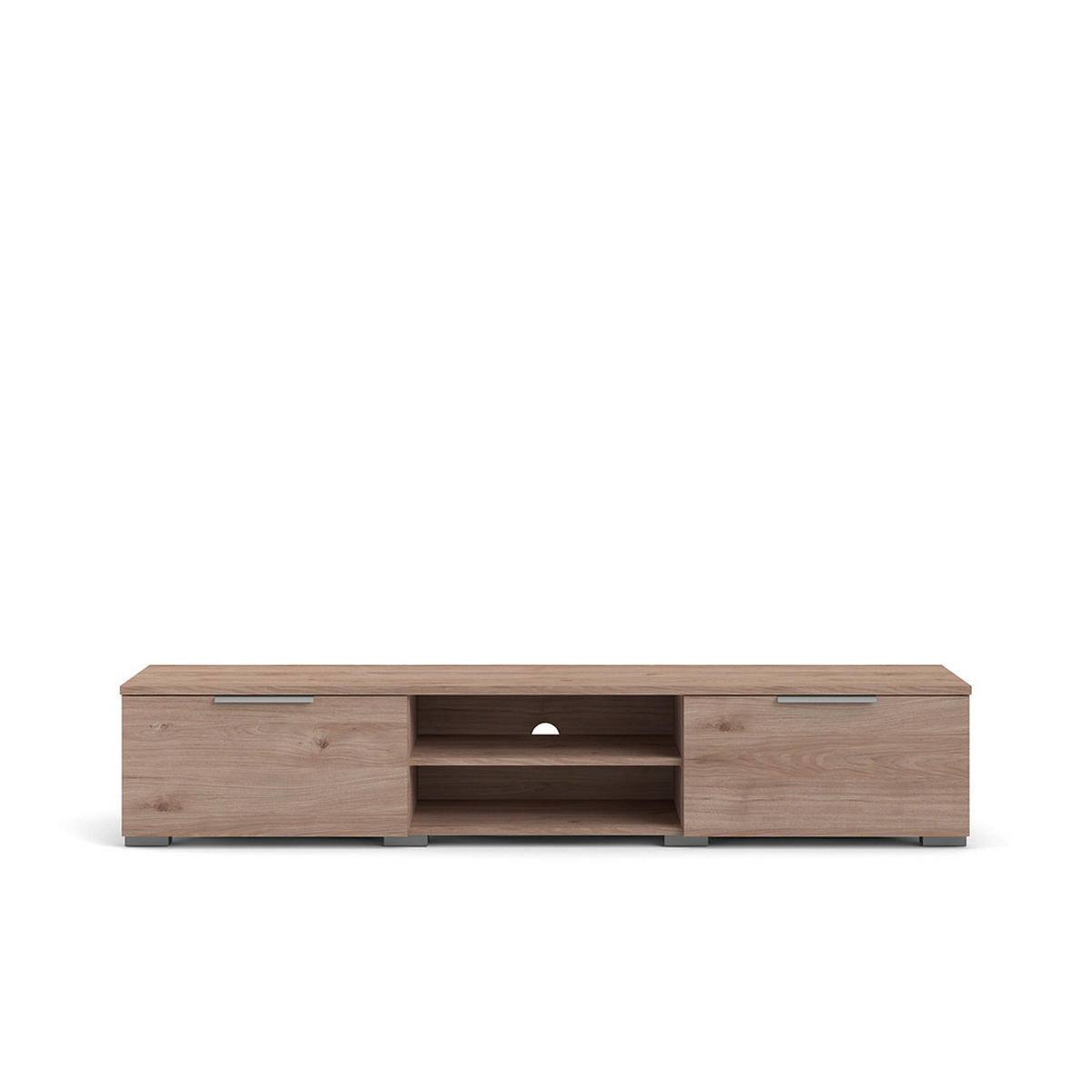 Der Malika TV Tisch in Hell Walnuss, mit zwei Schubladen und einer Ablage, bietet eine warme und einladende Ergänzung zu Ihrem Wohnzimmer. Die helle Walnussfarbe schafft eine gemütliche Atmosphäre, während die Schubladen und die Ablage praktischen Stauraum bieten. Ideal für Wohnräume, die eine natürliche Ästhetik mit modernem Design verbinden möchten, ist dieser TV Tisch eine stilvolle Wahl.
