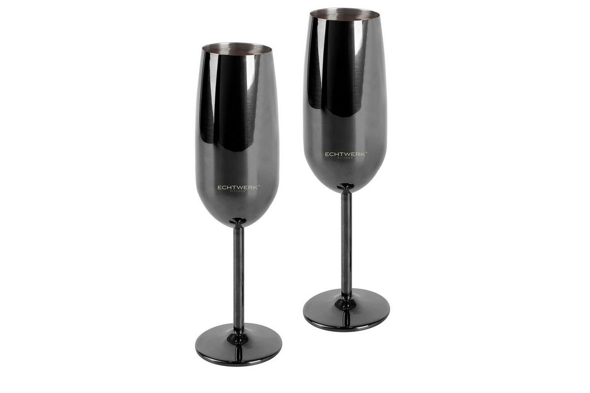 SEKTGLAS 250 ml 2-teilig  - Schwarz Hochglanz, Basics, Metall (6,3/6,3/22,5cm) - EchtwerkEchtwerk