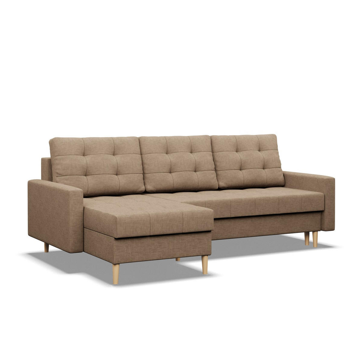 Ein universelles 3-Sitzer-Ecksofa mit Schlaffunktion und Bettkasten im skandinavischen Stil