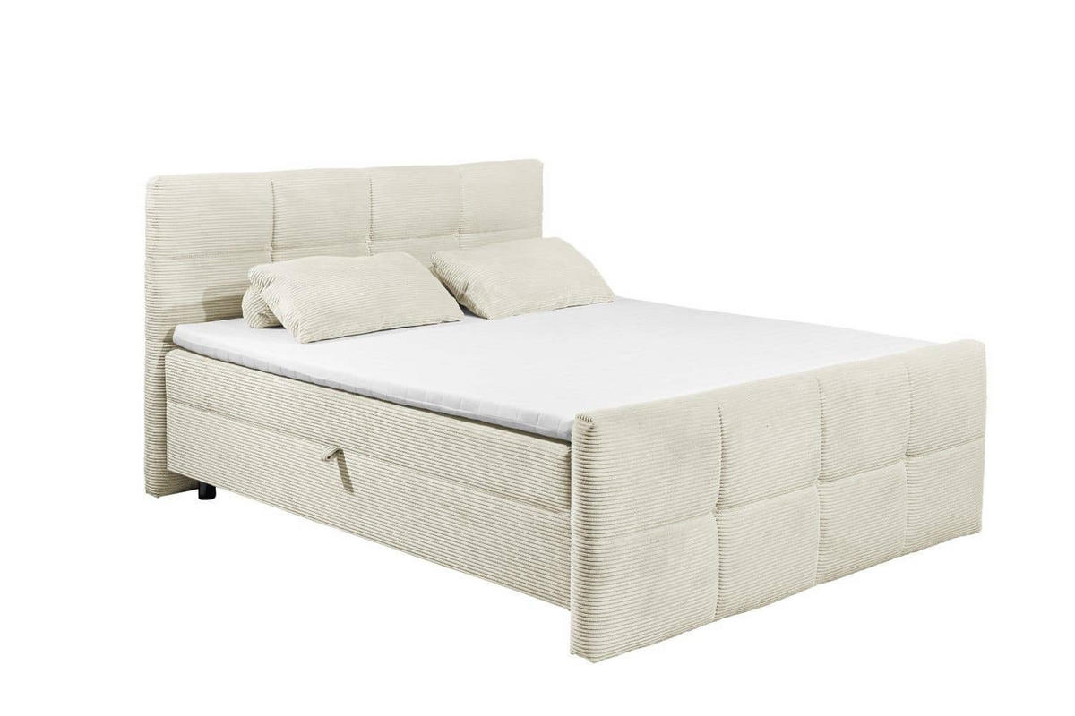 BOXBETT Breitcord, 7-Zonen-Tonnentaschen-Federkernmatratze, HR-30 Topper, Bettkasten - Beige/Creme, Holz/Kunststoff (160/200cm) - ed exciting design