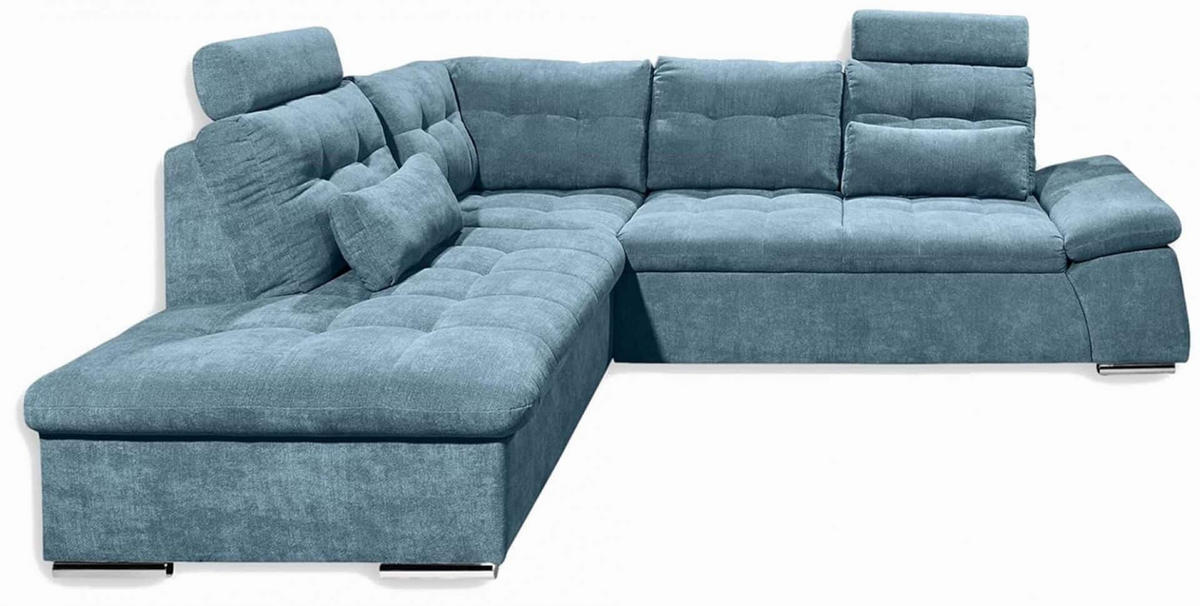 ECKSOFA mit Schlaffunktion, Bettkasten und verstellbarer Armlehne - Chromfarben/Blau, Textil (260/219cm) - ed exciting design